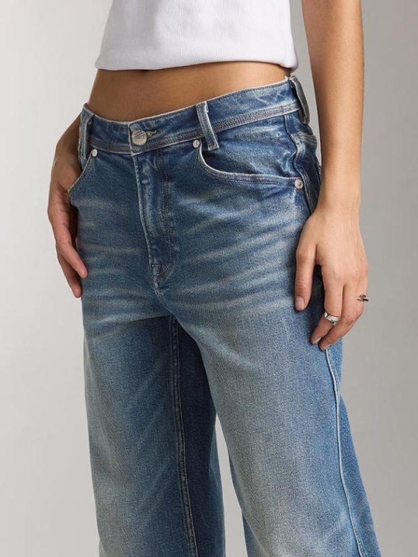 Made from Turkish cotton fibers known for their fine length and excellent sheen, this fabric is exceptionally skin-friendly and comfortable. It features a rugged texture with pronounced slub effects in both the warp and weft directions. Multiple washing and processing techniques give it a high-end vintage denim style. The exquisite whiskering treatment creates a ripple-like visual effect. The yoke seam, combined with a brown leather patch, enhances the hip shape, giving a firm and rounded silhouette. The straight-leg cut is clean and comfortable, with unique distressed details on each pant leg adding a distinctive vintage touch.